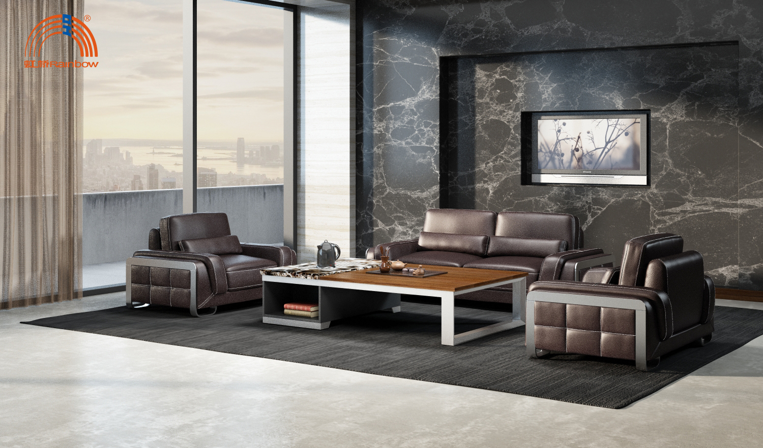 現(xiàn)代辦公家具材料有二類:一為自然材料(如木、竹、藤等),二為人工材料(如塑料、玻璃、金屬等。材料的不同,使得現(xiàn)代辦公家具在加工技術(shù)上,帶給人視覺(jué)和觸覺(jué)上的感受不同,由于材料本身所具有的特性,通過(guò)人工處理令其表面質(zhì)感更為張揚(yáng):使光滑的材料有流暢之美,粗糙的材料有古樸之貌,柔軟的材料有肌膚之感……這些材質(zhì)的處理還能使家具產(chǎn)生重輕感、軟硬感、明暗感、冷暖感,因此我們可以說(shuō),現(xiàn)代辦公家具中材料的恰當(dāng)運(yùn)用,不僅能強(qiáng)化現(xiàn)代辦公家具的藝術(shù)美,也提升了產(chǎn)品的綜合品質(zhì)。