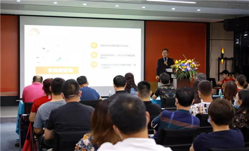 虹橋家具有限公司董事長左伯楊發(fā)表致辭,向經(jīng)銷商家人們闡述了虹橋家具在2019年里取得的重要成績和2020年的發(fā)展方向。并分析了當今把握家具市場機遇的重要性,以及如何通過有效途徑贏得未來更多的市場,共創(chuàng)優(yōu)質(zhì)產(chǎn)品、共享品牌榮譽與成果,共贏發(fā)展。