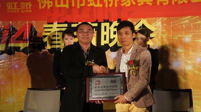 SGS代表姚勝武先生(左)向虹橋家具總經(jīng)理左伯良(右)授予“全球戰(zhàn)略合作伙伴”牌匾